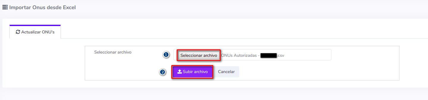 3Subir el archivo que se acaba de modificar a https://adminolt.com/settings/upload-onus/