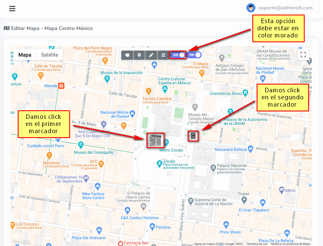 Debemos dar click en el primer marcador, después damos click en el segundo marcador