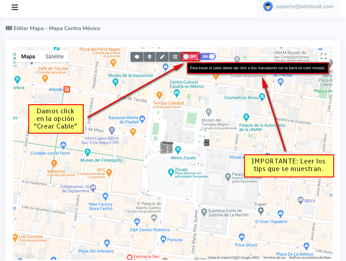 5 Se creará el cable en el mapa.