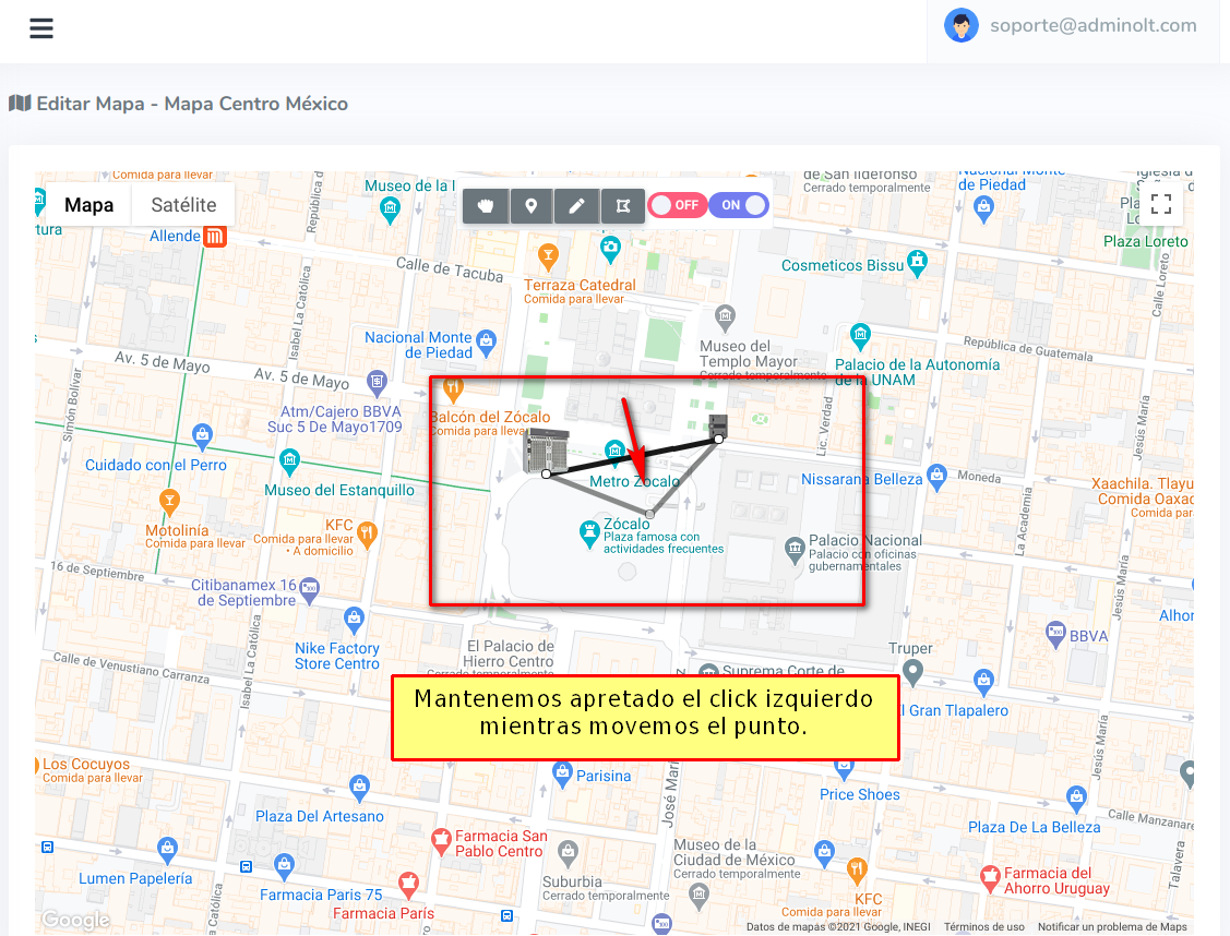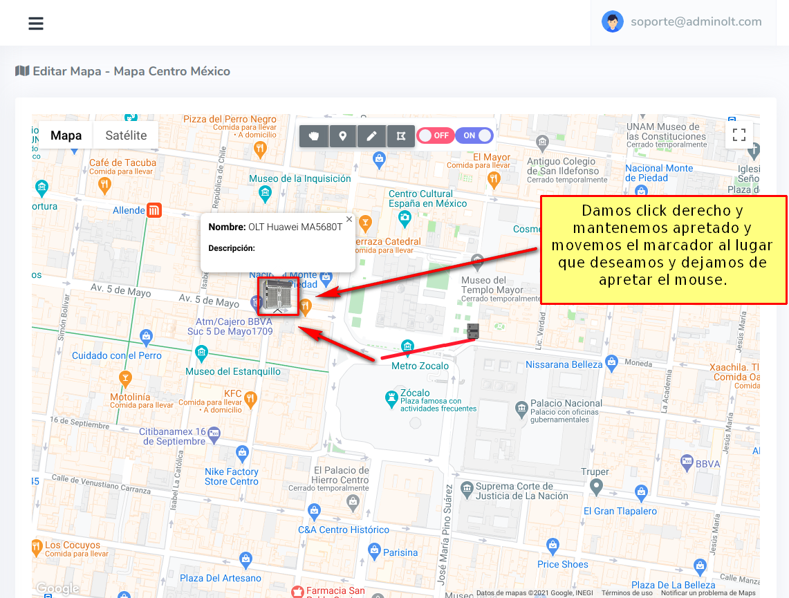 1 Poner en modo para manipular el mapa.