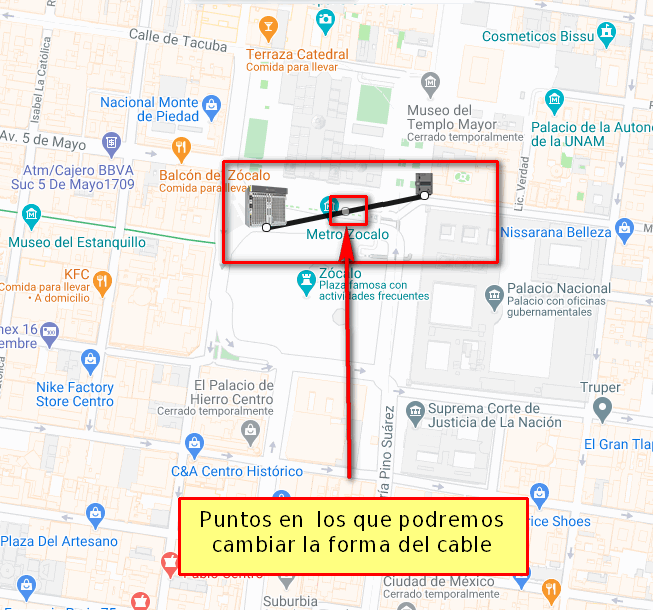 Al hacer los pasos anteriores la forma de cable de editara, de igual manera se crearán mas puntos donde podemos seguir cambiando la forma del cable.