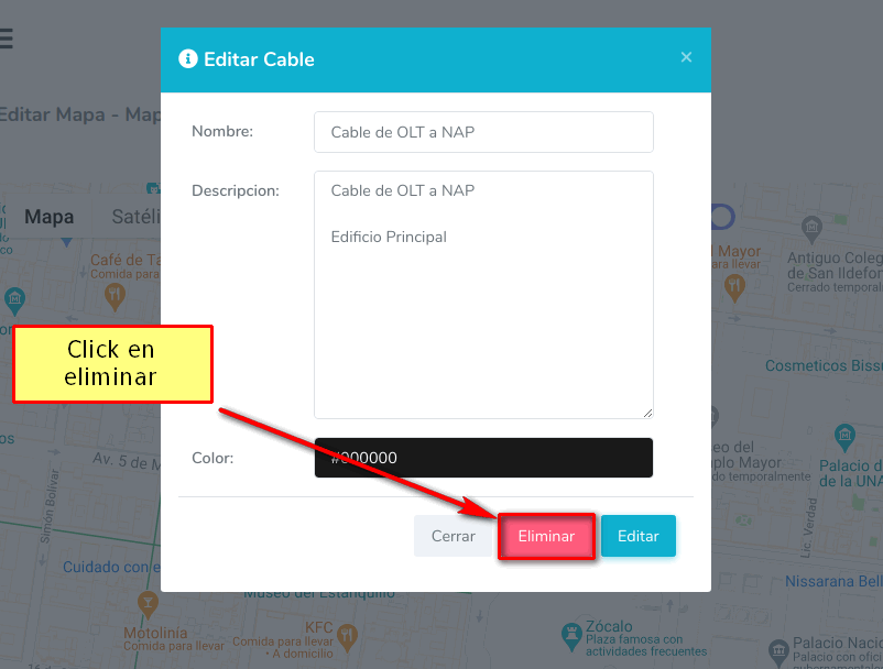 Si por alguna razón se desea eliminar un cable creado puede seguir los siguientes pasos para poder eliminarlo.