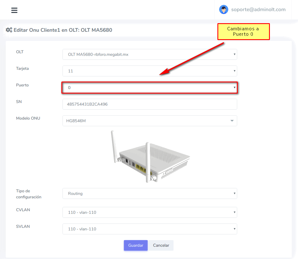 Para editar el Puerto de una ONU en la OLT existen 2 formas de hacerlo: