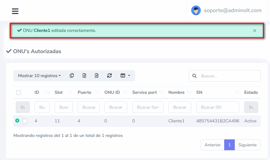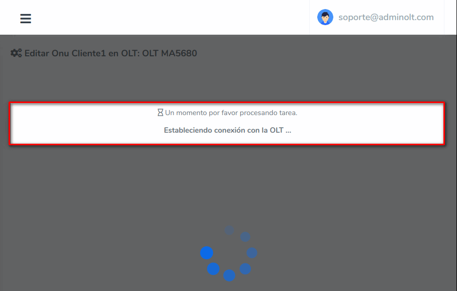 7 Esperamos que AdminOLT se conecte con su OLT y haga los cambios.