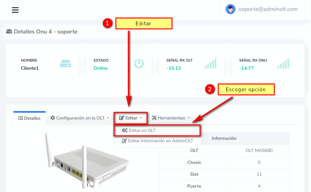 4 Vamos a Editar y escogemos Editar en OLT