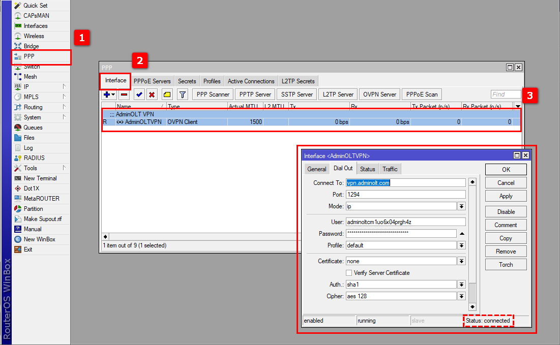 5Pegamos en la terminal de su Routerboard el script que copiamos y verificamos la conexion.