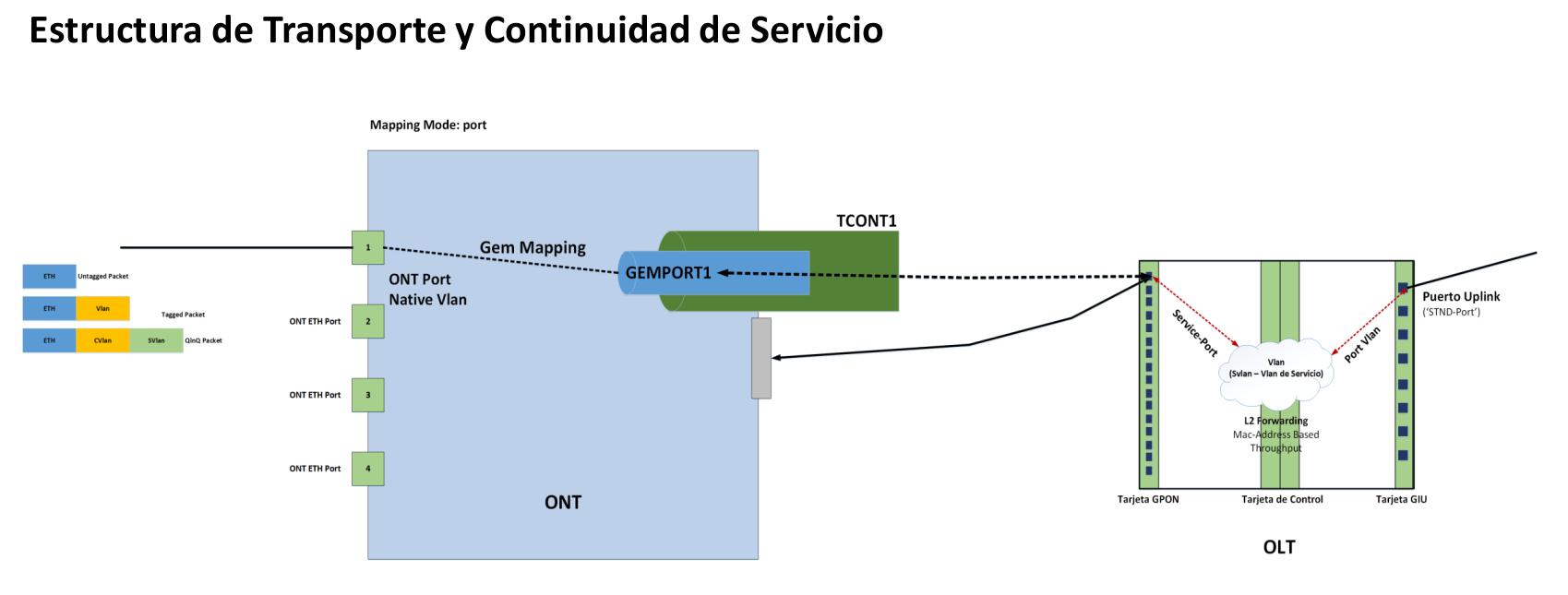 AdminOLT NO configura la OLT para que esta pueda proveer servicio IPTV o VOIP, simplemente configura las ONU's de manera que todo el flujo de datos para estos servicios sea independiente (asignando un GEMPORT y TCONT por servicio). Para que esto sea posible se debe crear un service port por servicio, el cual estrictamente utiliza la VLAN (Vlan de cliente) y GEMPORT especificado en la configuración del Servicio.