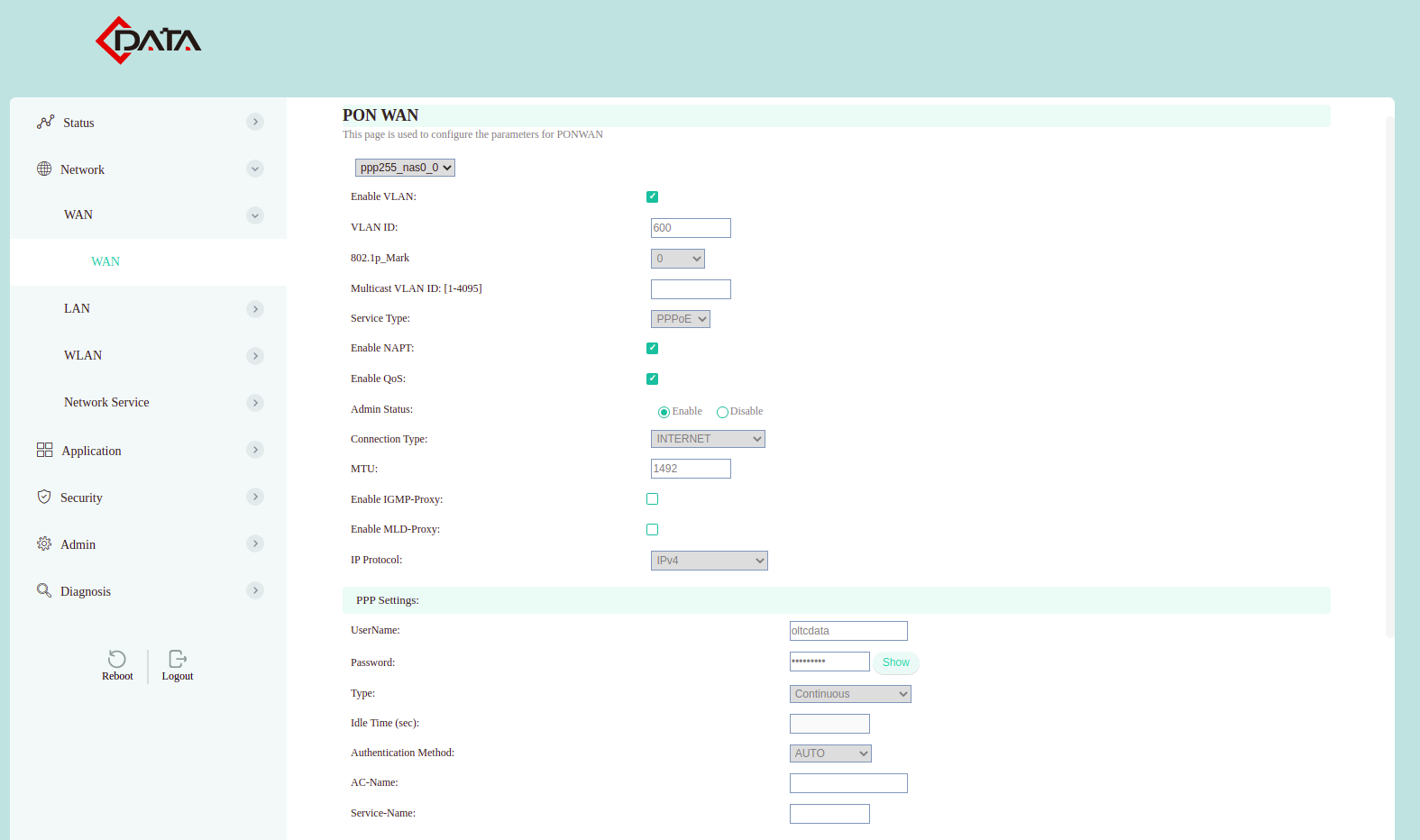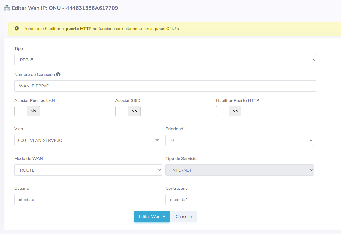 Configuración WAN IP C-Data (AdminOLT)