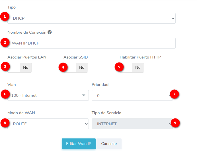 - 7.-Prioridad: Defina la prioridad que le asignará a su WAN IP en un rango del 1 al 7
