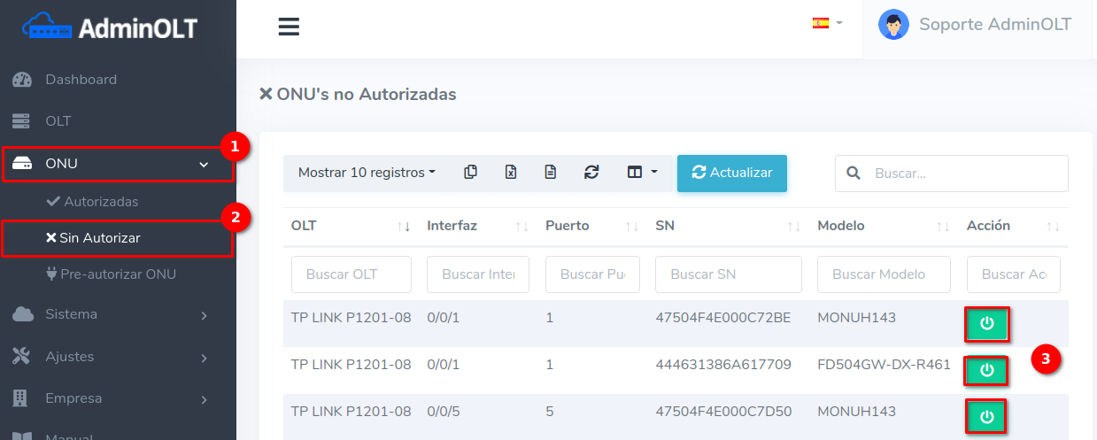 - 3.-Asociar Puertos: Asocia los puertos LAN de la ONU.