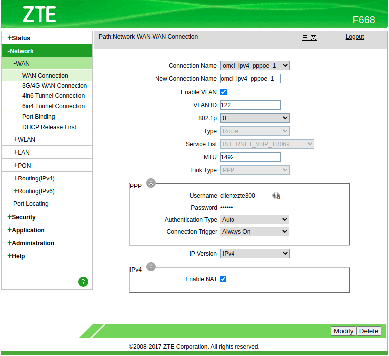 Configuración WAN IP ZTE (AdminOLT)
