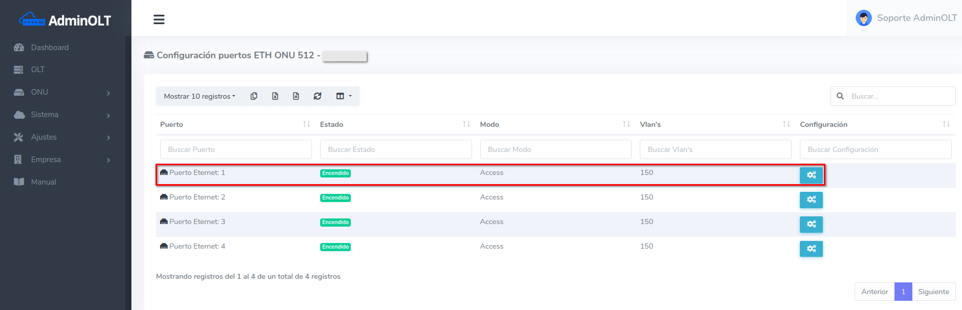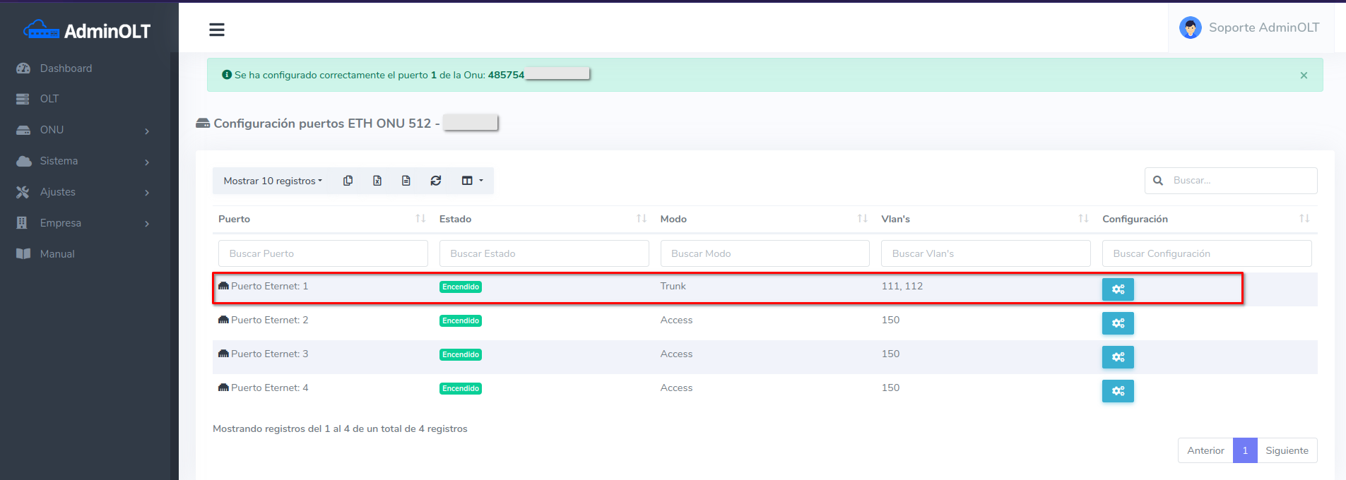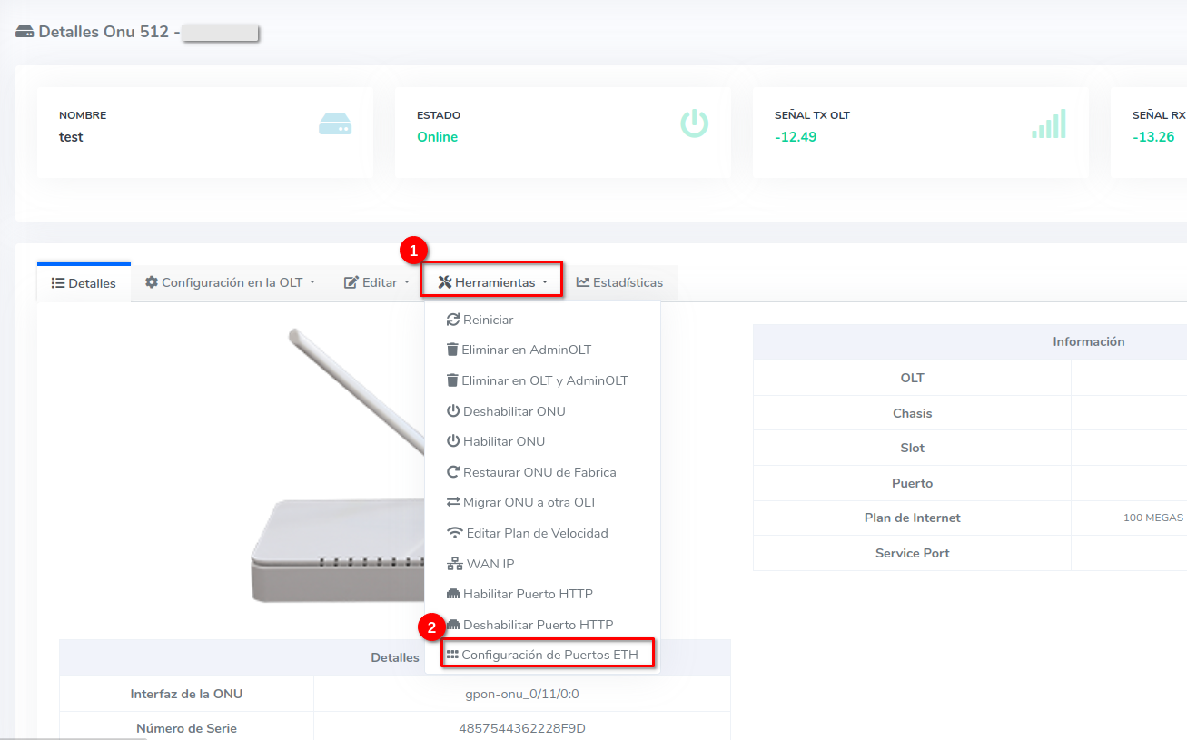 3Dirijase a la sección de ONU > Autorizadas y seleccione la ONU que acaba de autorizar.