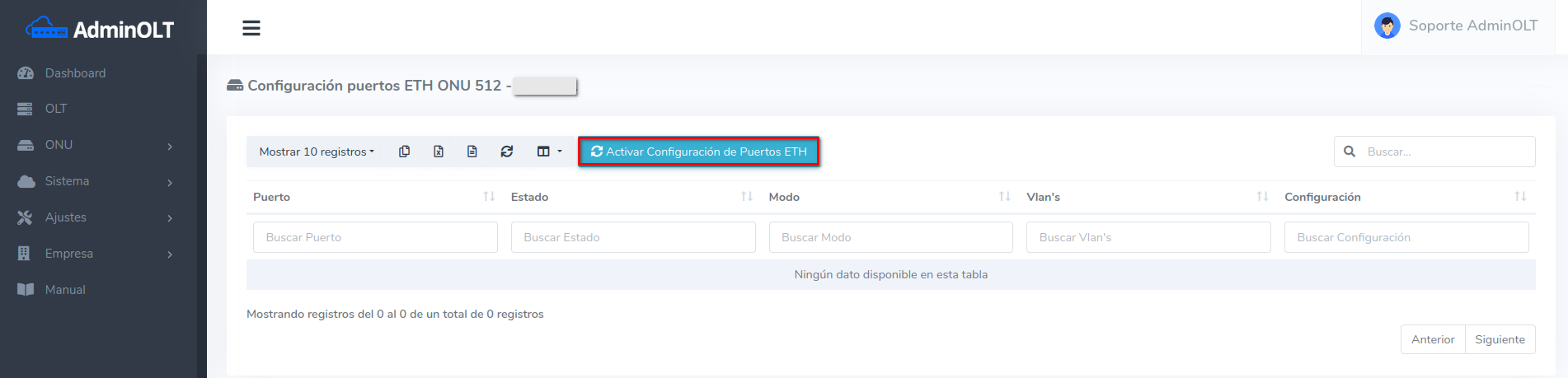 AdminOLT ha integrado una característica para hacer configuraciones de los puertos ETH. Pudiendo mandar vlans en diferentes modalidades que son Trunk, Hybrid, Access y Transparent, y asi poder colocarlas en cada uno de estos modos y que puedan ser mandadas de manera especifica sobre los puertos ETH.