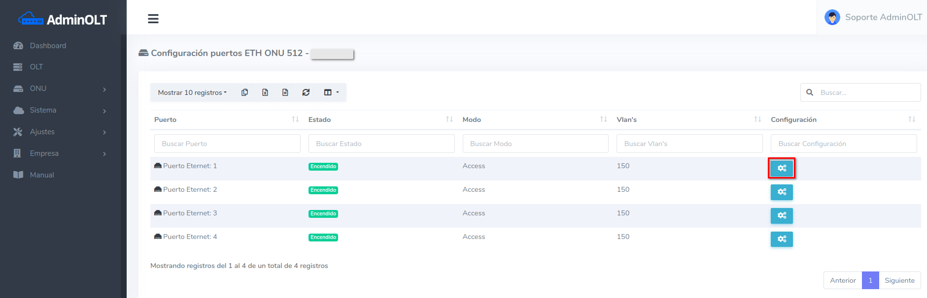 1 En Configuracion de puertos ETH dirijase al boton de configuración del puerto ETH que desee configurar
