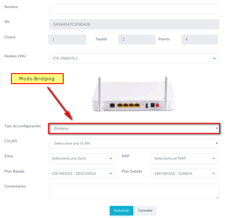 Para este paso nos podemos seguir las instrucciones del manual Autorizar ONU.