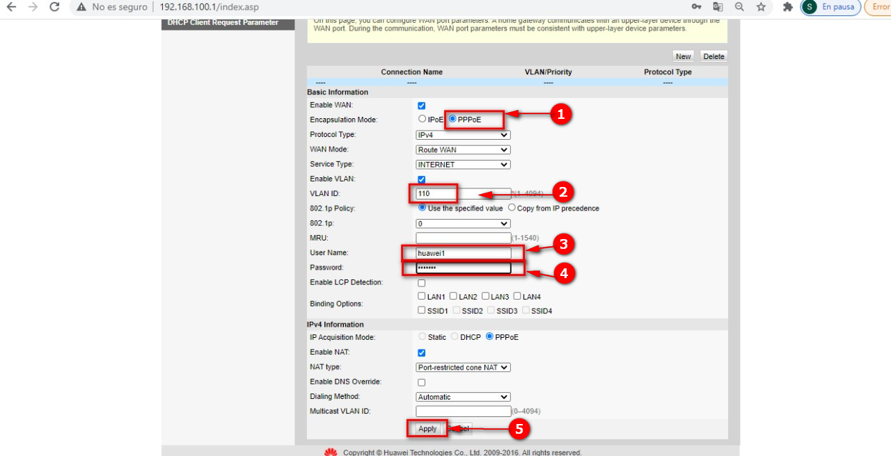 1 Accedemos al navegador y entramos a la interfaz de la ONU utilizando su IP por default 192.168.100.1