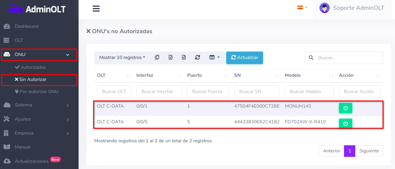 En AdminOLT podemos editar información de una ONU Autorizada en la OLT, supongamos que alguna de las ONUs que tenemos autorizadas en el sistema se estropea. Tomaremos como ejemplo esta situación para explicar el propósito de esta función. Así que en ese caso en AdminOLT al editar ONU por SN podemos tomar información de alguna ONU no Autorizada y usarla, sin perder la configuración inicial que teníamos.