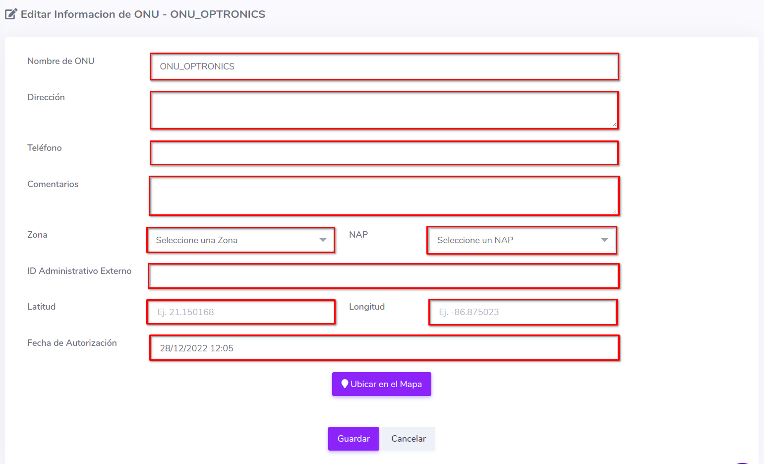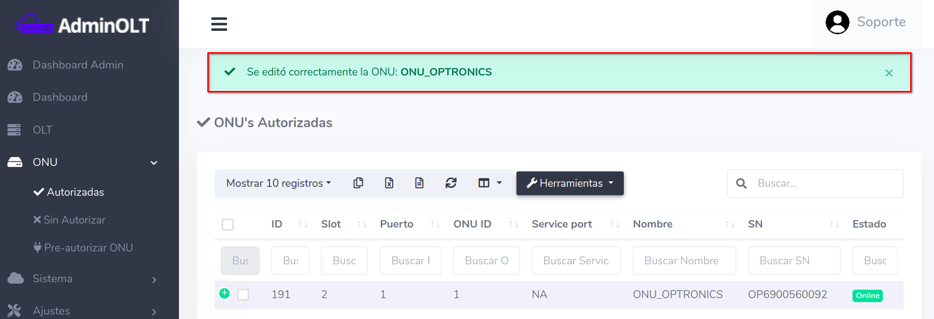 - Editar ONU en AdminOLT desde Lista de ONU's Autorizadas
