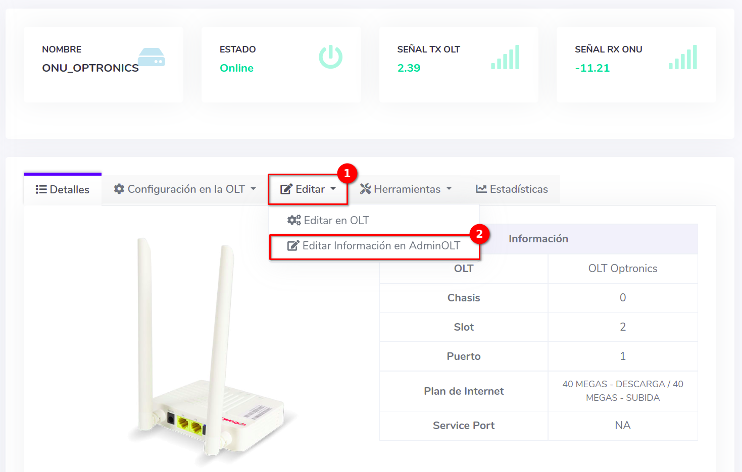 - Editar ONU en AdminOLT desde Detalles de ONU
