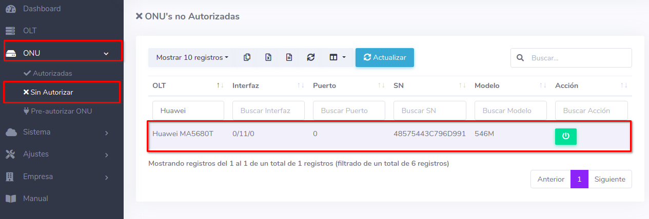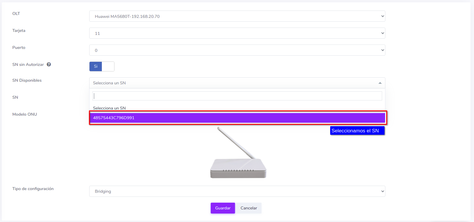 Editar ONU por Numero de Serie (SN)