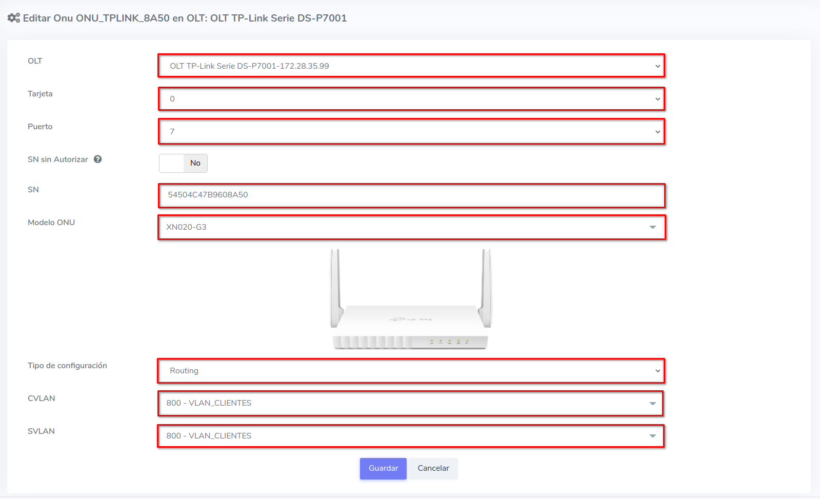 - Editar ONU en AdminOLT desde Lista de ONU's Autorizadas