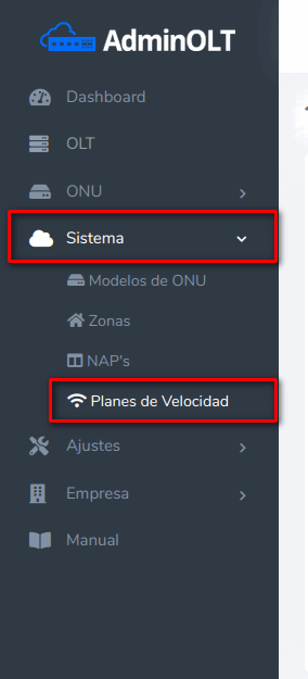 1 Ir a Sistema > Planes de Velocidad