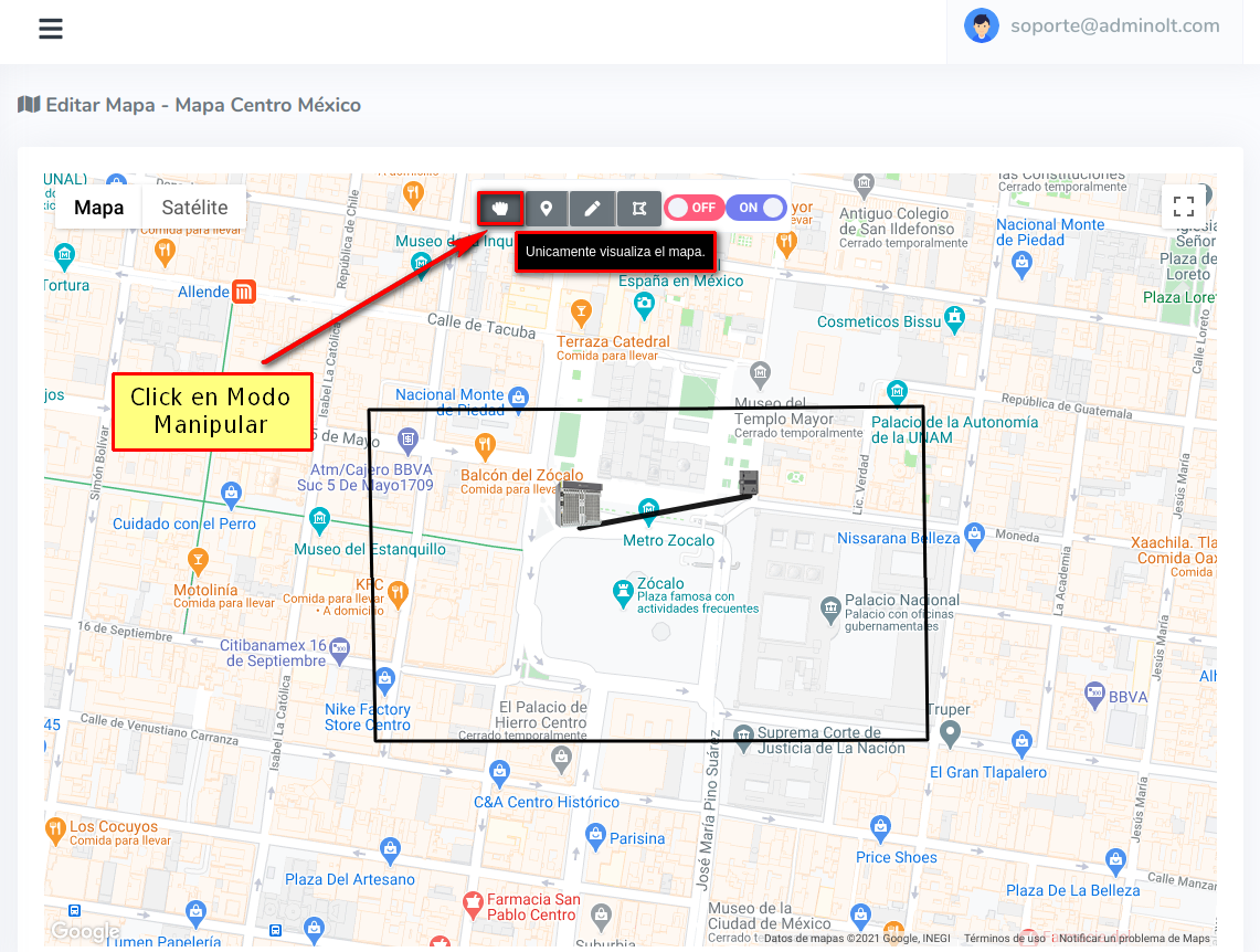 Damos click en la opción Manipular Mapa para terminar de dibujar la forma.