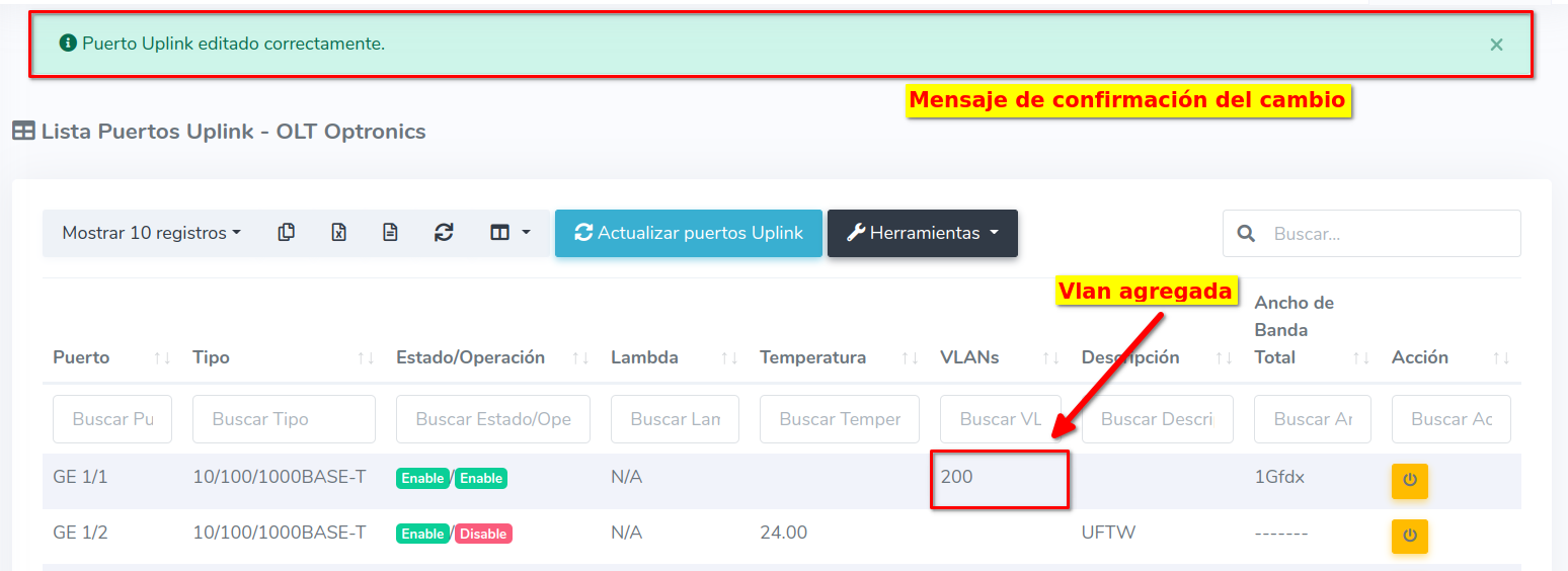Habilitar puerto UPlink Optronics