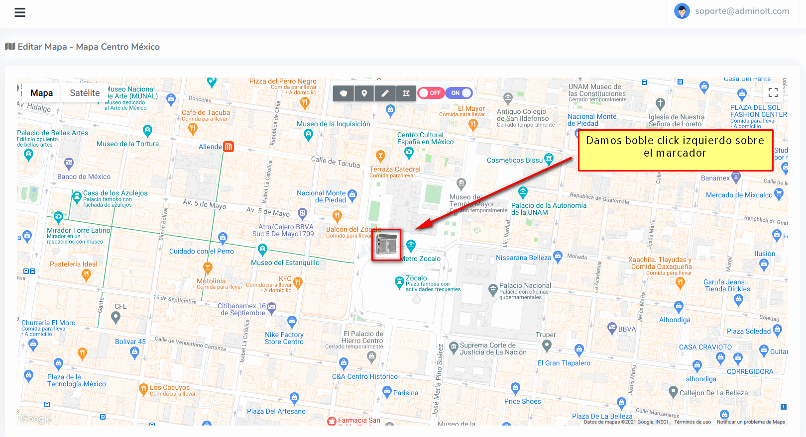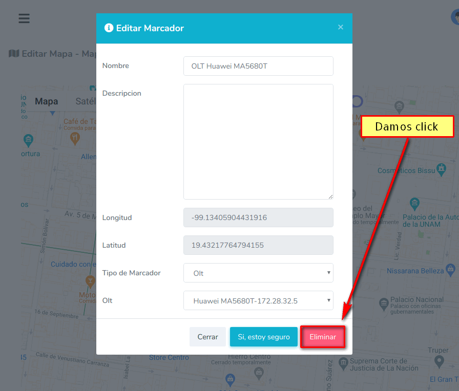 2 Damos click en el mapa en el lugar donde deseamos posicionar el marcador.