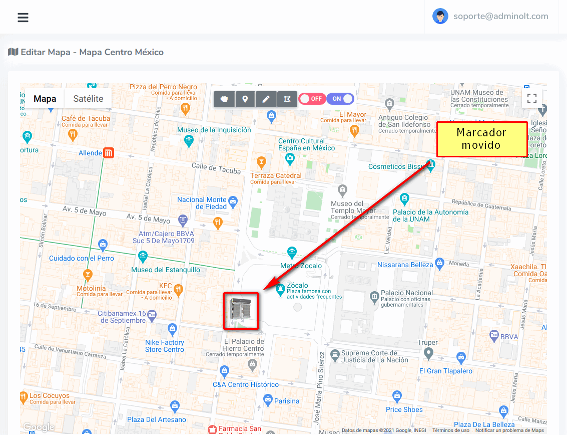 Si queremos cambiar de lugar un marcador creado lo podemos hacer, para esto debemos abrir el mapa en el que se encuentra el marcador y seguir los siguientes pasos.
